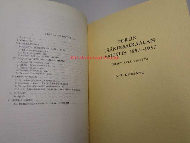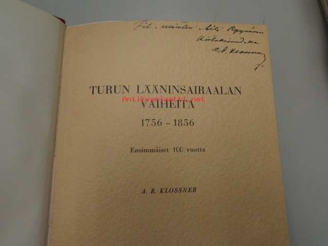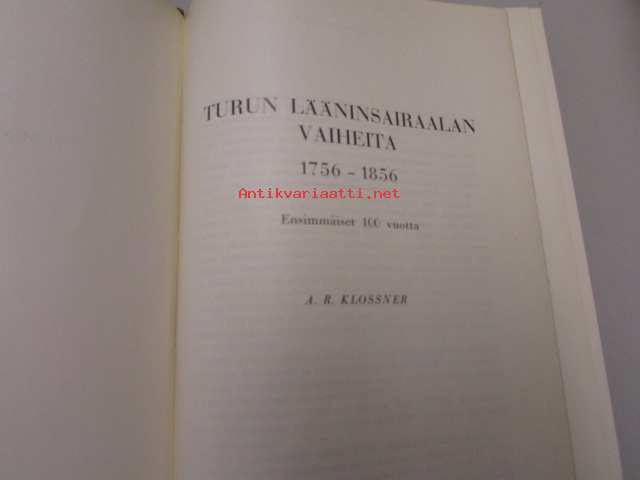 Turun lääninsairaalan vaiheita 1756-1856 ja 1857-1957