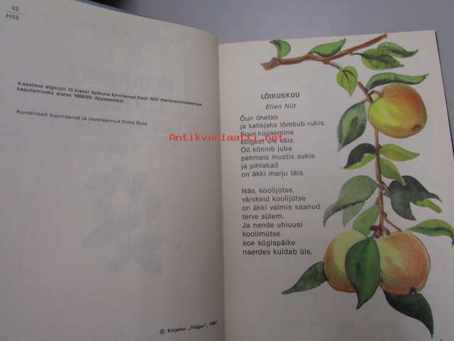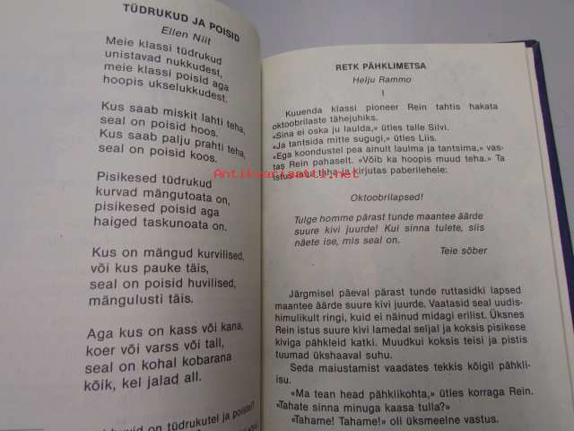 | Saatavilla | 1 kpl | | Julkaisuvuosi | 1987 | | Sivuja | 142 | | Painos | 1. | | Kunto | K3 | | Sidonta/painoasu | Kuvitettu kovakantinen | | Kielet | Viro |