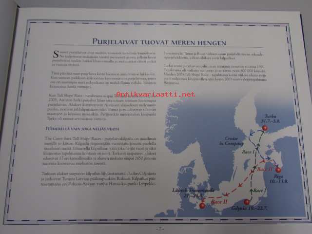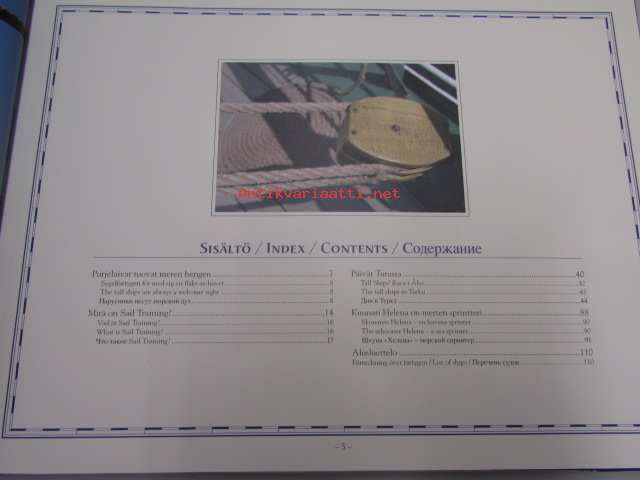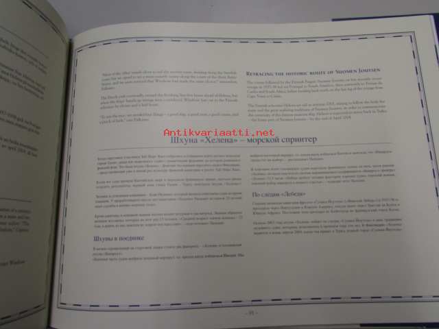 | Saatavilla | 1 kpl | | Julkaisuvuosi | 2003 | | Sivuja | 111 | | Painos | 1. | | Kunto | K3 | | Sidonta/painoasu | Sidottu (kansipaperit) | | ISBN | 951-9129-56-1 | | Kielet | Suomi, Ruotsi, Englanti, Venäjä |