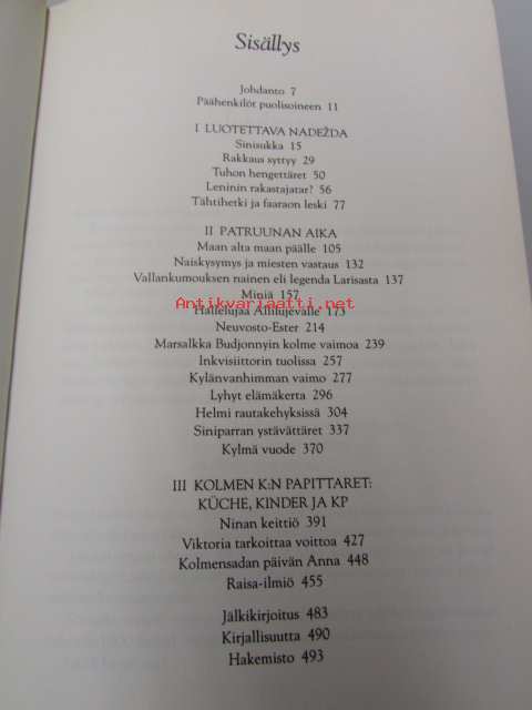 Vasiljeva Larissa, Otava, 1994Venäläinen Larisa Vasiljeva kertoo monta koskettavaa ja traagista tositarinaa Neuvostoliiton mahtimiesten vaimoista ja rakastajattarista.