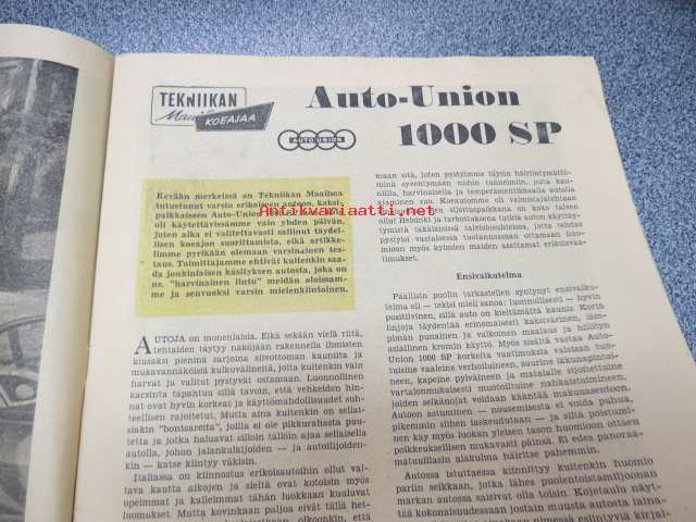 Tekniikan Maailma 1960 ylimääräinen autoliite mm. Bardahl-voiteluaineet, "Volkkareita" ( Volkswagen) vuokralle, Auto-Union 1000 SP, Formula Junior eläintarhaan,