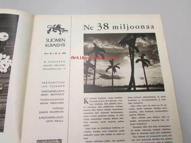 Suomen Kuvalehti 24.8. 1963 nr 34 sis. mm. : piispa Dick Helander, muuttolinnut, Leningradin kirjailijakokous, Lapin maatalousnäyttely, Hrustshevin huvila, Kalevan