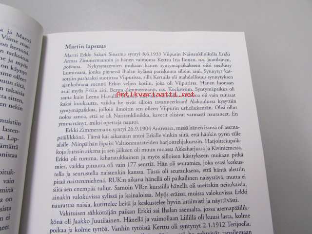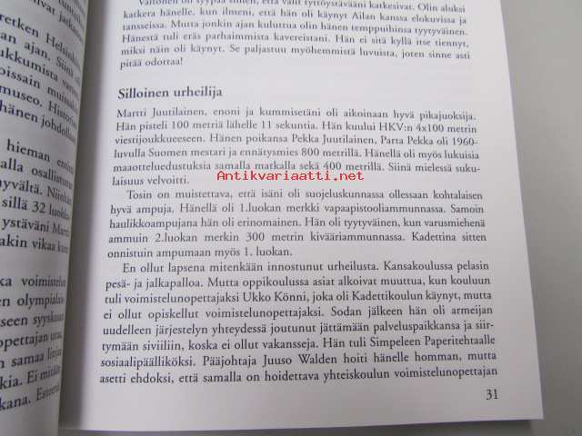 | Saatavilla | 1 kpl | | Julkaisuvuosi | 2006 | | Sivuja | 240 | | Painos | 1. | | Kunto | K3 | | Sidonta/painoasu | Nidottu (pehmeäk.) | | ISBN | 952-91-9859-0 | | Kielet | Suomi |
