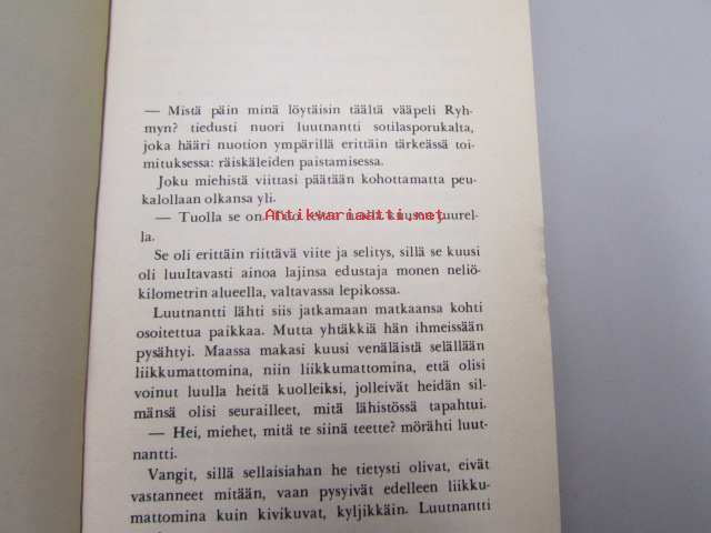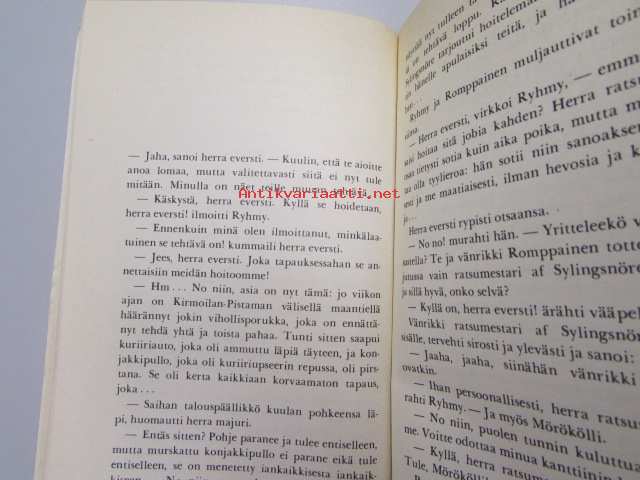 | Saatavilla | 1 kpl | | Julkaisuvuosi | 1975 | | Sivuja | 152 | | Painos | 6. | | Kunto | K3 | | Sidonta/painoasu | Nidottu (pehmeäk.) | | ISBN | 951-23-0895-9 | | Kielet | Suomi |