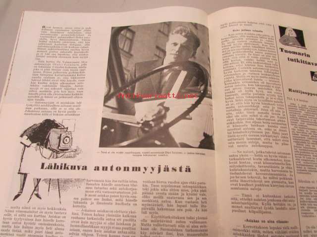 Moottori 1959 nr 3, auto mullistaa Amerikkaa, neljä päivää Leningradissa, lähikuva automyyjästä, aja oikein Helsingissä