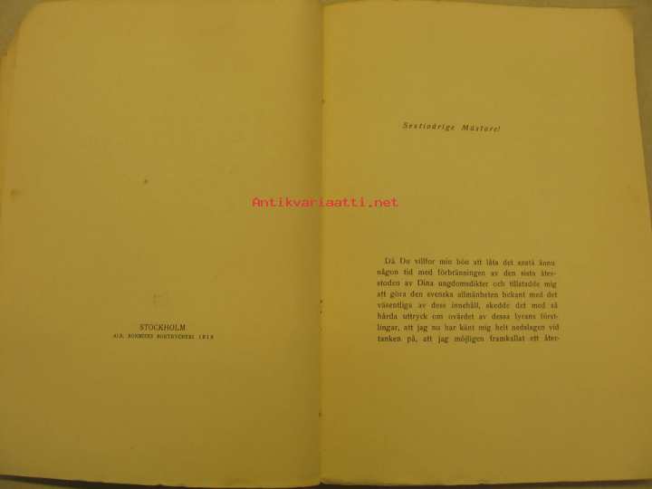 | Saatavilla | 1 kpl | | Julkaisuvuosi | 1919 | | Sivuja | 155 | | Painos | 1. | | Kunto | K3 | | Sidonta/painoasu | Nidottu (pehmeäk.) | | Kielet | Ruotsi |