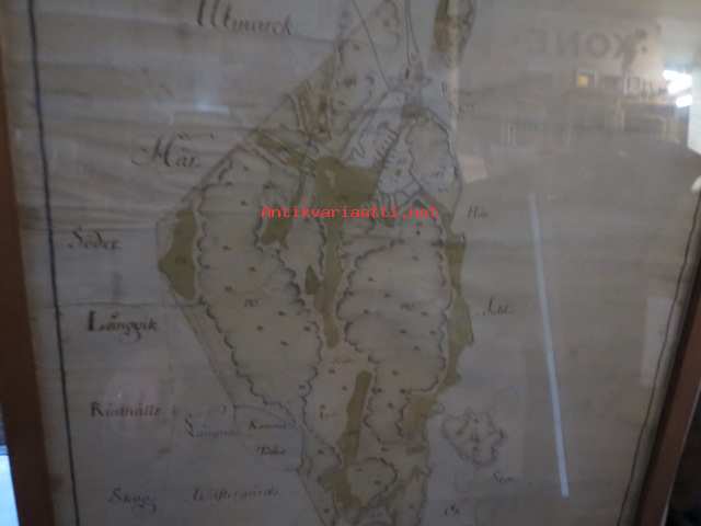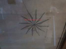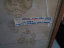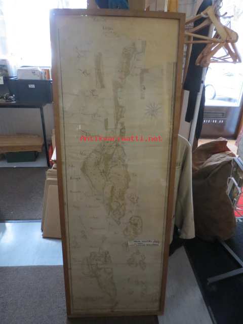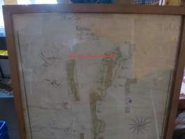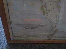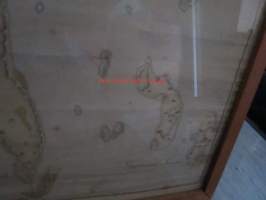 50 x 136 cm, kehyksen ulkomitat, vanhahko kehystys, kyseessä siis piirretty kartta, ei painotyö.