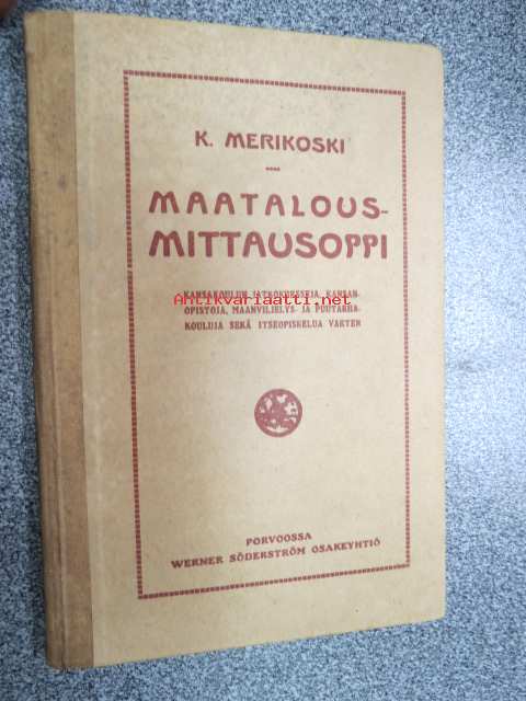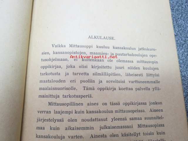 Maatalousmittausoppi kansakoulun jatkokursseja, kansanopistoja, maanviljelys- japuutarhakouluja sekä itseopiskelua varten