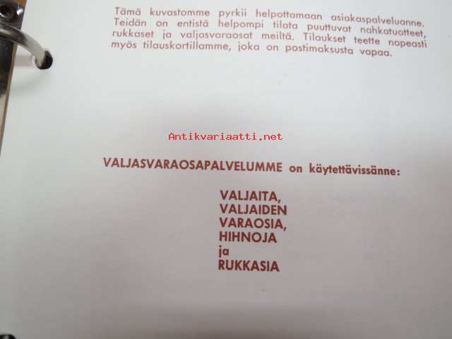 | Saatavilla | 1 kpl | | Sivuja | 14 | | Kunto | K3 | | Sidonta/painoasu | Kansio | | Kielet | Suomi |