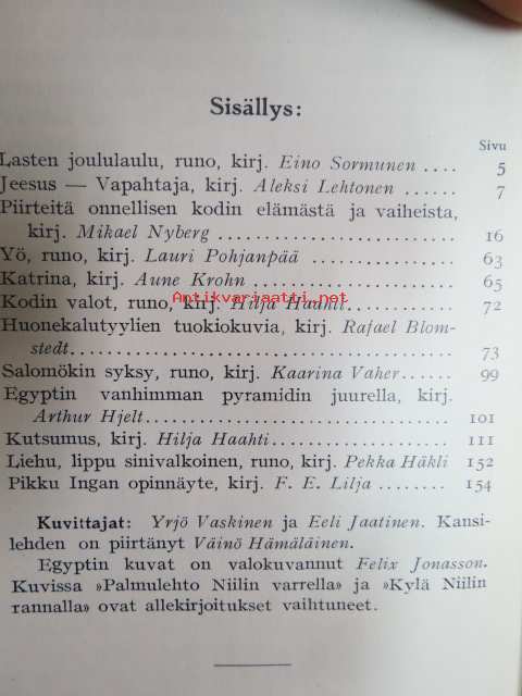 Kodin kynttilät II sis. mm. "Pikku Ingan opinnäyte" - kinkerimuistelma Petsamon Maattivuonosta, kuvittajat Yrjö Vaskinen, Eeli Jaatinen, kansilehti Väinö Hämäläinen
