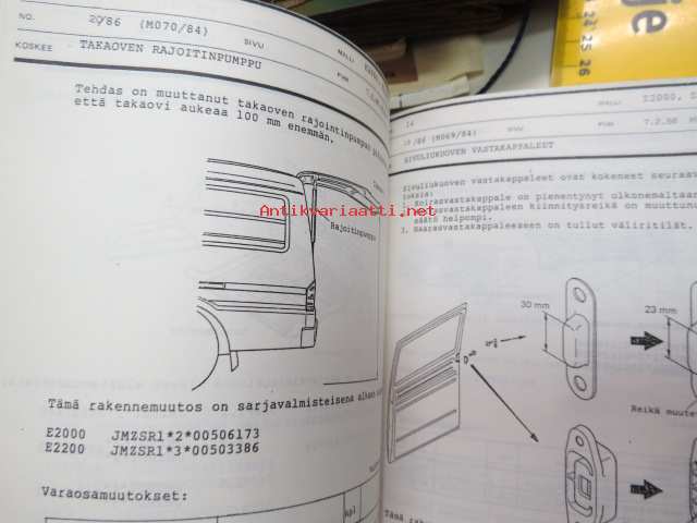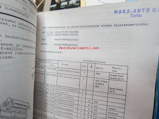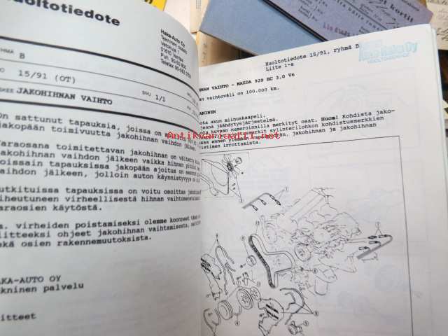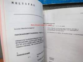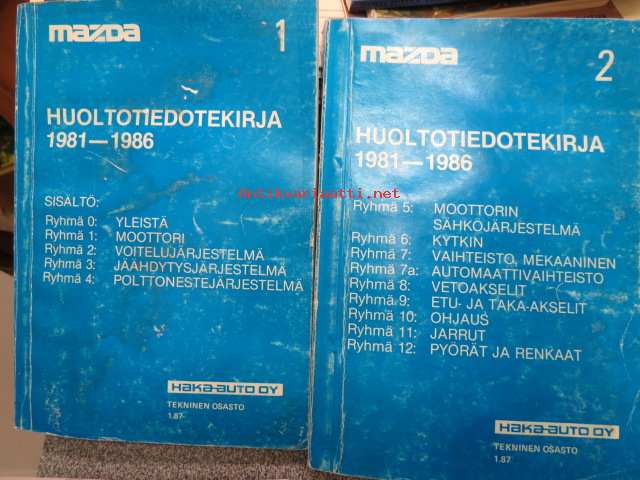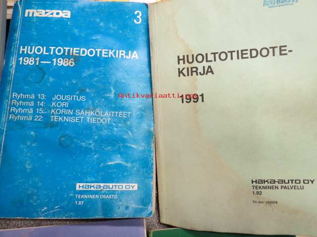Mazda huoltotiedotekirjat 1981-86, 1987, 1989, 1990, 1991, 1993, 8 kpl maahantuojan huoltotiedotteita korjaamokäyttöön kirjoiksi koottuna