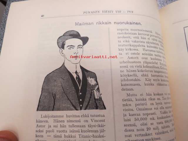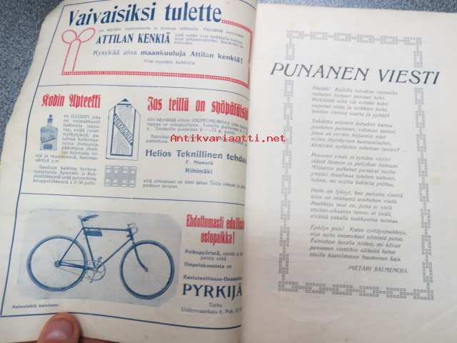| Saatavilla | 1 kpl | | Julkaisuvuosi | 1914 | | Sivuja | 100 | | Kunto | K2 | | Sidonta/painoasu | Lehti | | Kielet | Suomi |