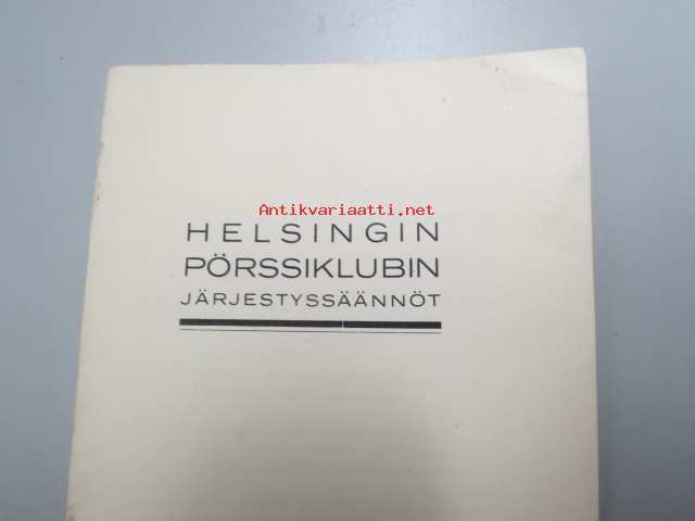Helsingin Pörssiklubin järjestyssäännöt 1915 -painate - Ordningsregler för Helsingfors Börsklubb