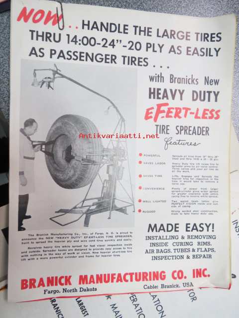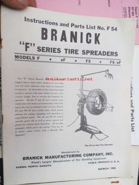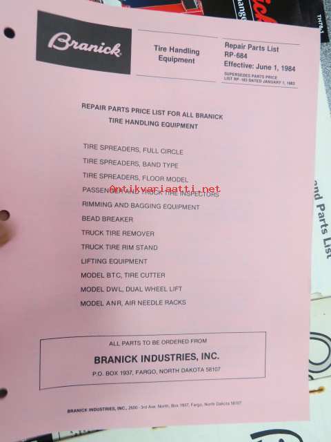 Branick tire assembly etc. tools - rengasalan työkalujen ja tarvikkeitten esittelylehtisiä ja mainoksia 10 kpl