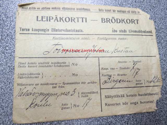 Turun kaupungin Elintarvelautakunta -leipäkorttien jakokuori Johan Kustaa Toivonen