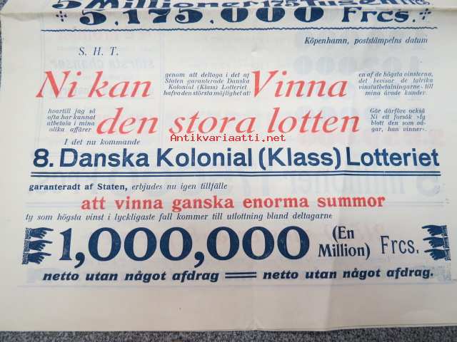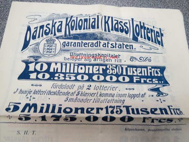 Danska Kolonial (Klass) Lotteriet -arpajaisesite