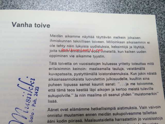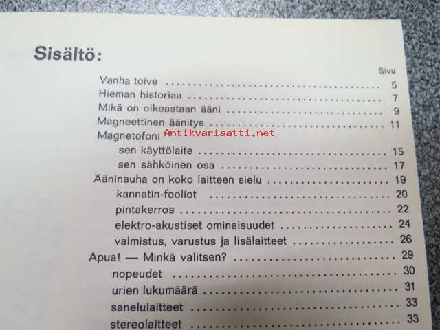 | Saatavilla | 2 kpl | | Julkaisuvuosi | 196? | | Sivuja | 76 | | Kunto | K3 | | Sidonta/painoasu | Nidottu (pehmeäk.) | | Kielet | Suomi |