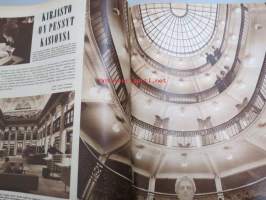 Suomen Kuvalehti 1957 nr 45, Waltari akatemian kuopus, Vuokko Eskolin, miten muistomitaleita, muistoristejä ja kunniamerkkejä on kannettava, Helsingin Yliopiston kirjasto on pessyt kasvonsa, Huippuvuorilla tehdään tiedettä
