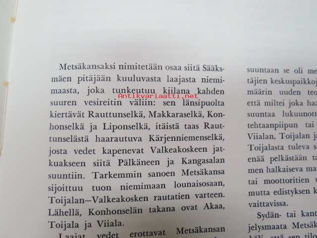 | Saatavilla | 1 kpl | | Julkaisuvuosi | 1969 | | Sivuja | 136 | | Painos | 1. | | Kunto | K2 | | Sidonta/painoasu | Nidottu (pehmeäk.) | | Kielet | Suomi |
