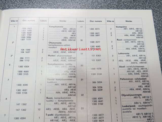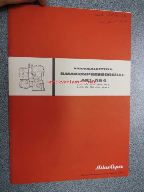 Atlas Copco AR1-AR4 (AR1, ARE1, ARR116, AR116E, AR3, AR3E, AR4E, AR416, AR416E) ilmakompressori -varaosaluettelo