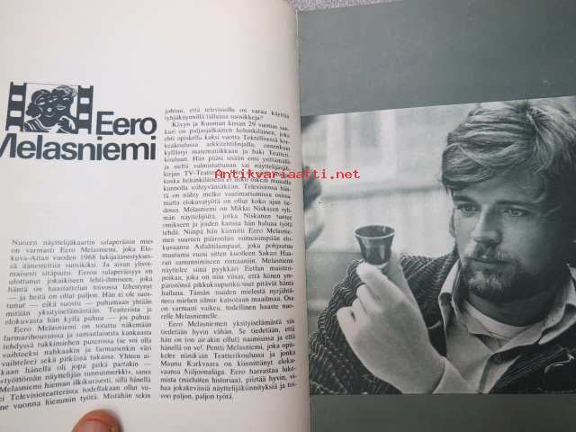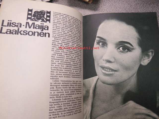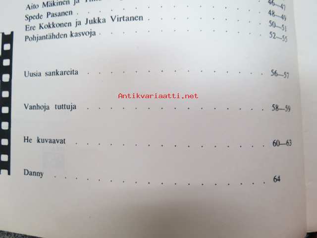 | Saatavilla | 1 kpl | | Julkaisuvuosi | 1968 | | Sivuja | 64 | | Painos | 1. | | Kunto | K2 | | Sidonta/painoasu | Nidottu (pehmeäk.) | | Kielet | Suomi |