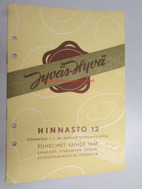 Jyväshyvä hinnasto 12 1.1.1956 alkaen