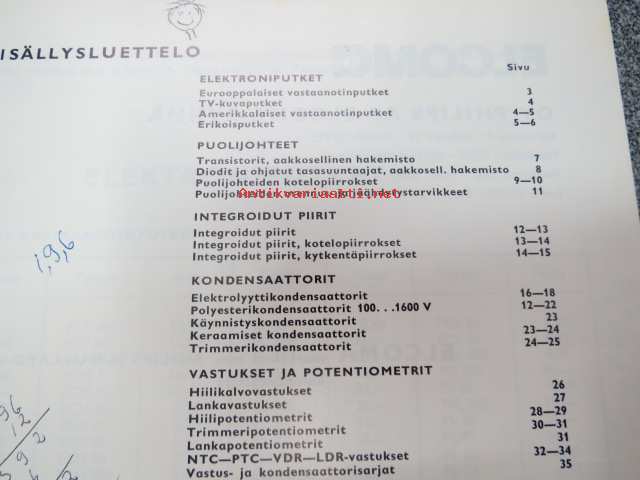 Elcoma (Philips) Elektroniikan komponentit hinnasto 1969-1970