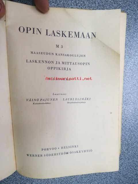 Opin laskemaan M 3 Maseudun kansakouolujen laskennon ja mitttausopin oppikirja VII luokka