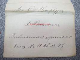 A. Häkkinen, St. Petersburg, Sabalkanskij Prospekt dom nr 18 kvartira nr 47 -kirjekuori, ei lähetetty, sisällä erikoinen läpikuultava kortti