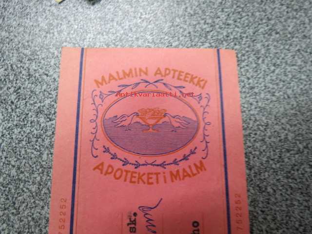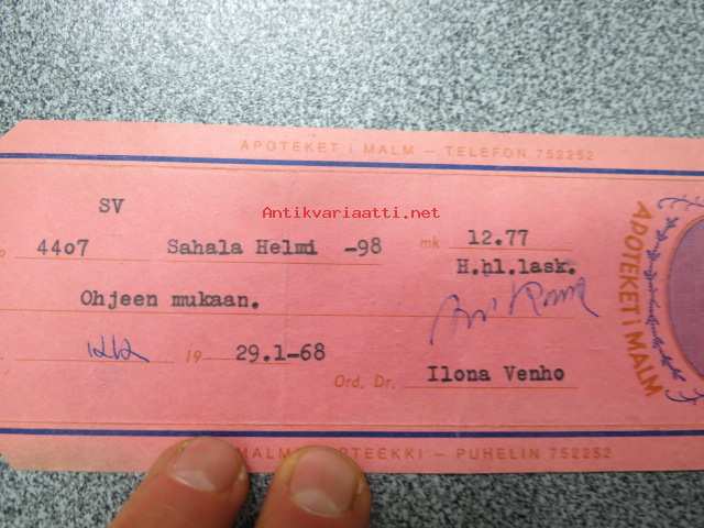 Malmin Apteekki - Apoteket i Malm, 29.1.1968 -apteekkisignatuuri
