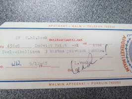 Malmin Apteekki - Apoteket i Malm, 9.12.1967 -apteekkisignatuuri