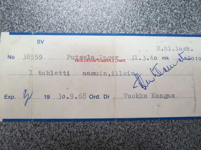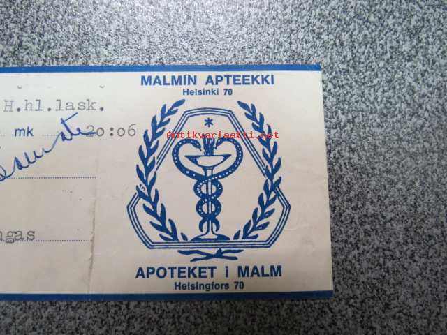 Malmin Apteekki - Apoteket i Malm, 30.9.1968 -apteekkisignatuuri