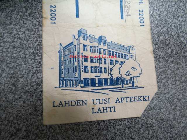 Lahden Uusi Apteekki, Lahti, 27.10.1961 -apteekkisignatuuri