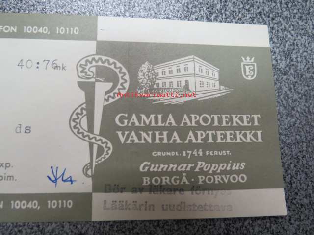 Vanha Apteekki - Gamla Apoteket, Porvoo - Borgå, 16.12.1972 -apteekkisignatuuri