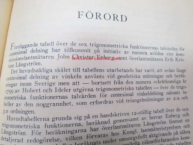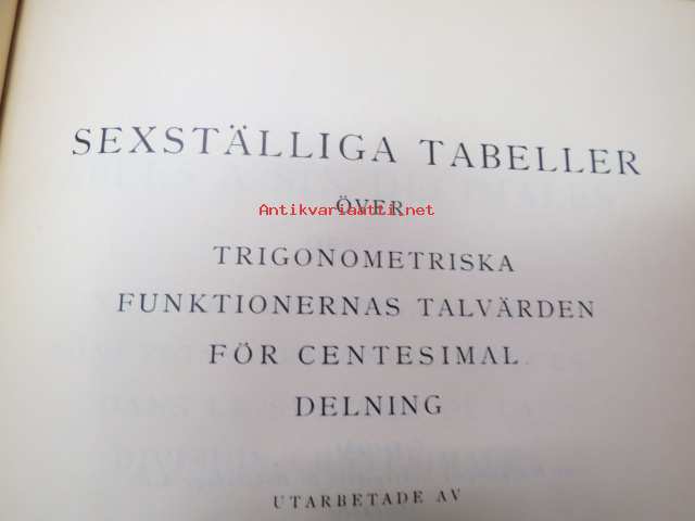 Sexställiga tabeller över trogonometriska funktionernas talvärden för centesimal delning