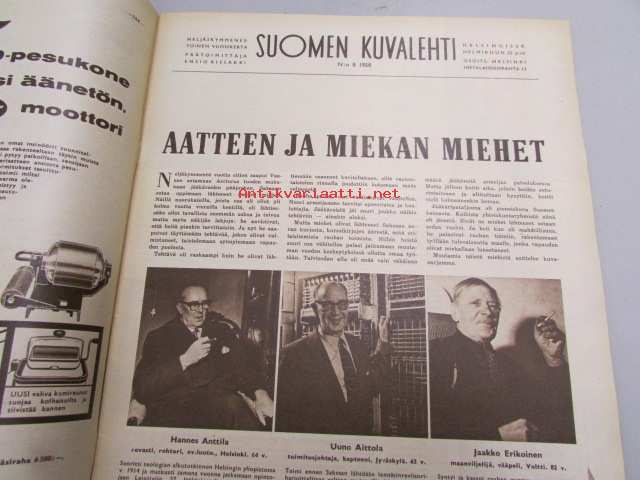 Suomen Kuvalehti 1958 nr 8, kansikuva neljä iloista jääkärikenraalia : Olenius, Sundman, Heiskanen ja Sihvo, Heikkisen perhe Lapinlahti (Yrjö-pojan sydänleikkaus), MM JA SM, kemian tohtori Erkki Pulkkinen Amerikkaan