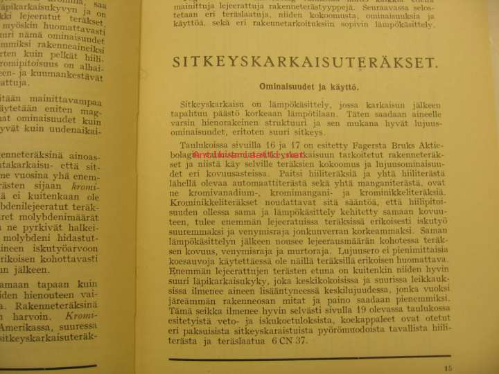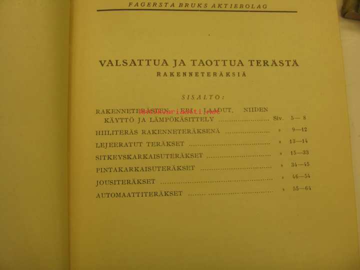 Fagersta Bruks AB, 1932Kirja rakenneteräksistä, erityisesti Fagerstan tehtaan tuotannosta 1930-luvulta.