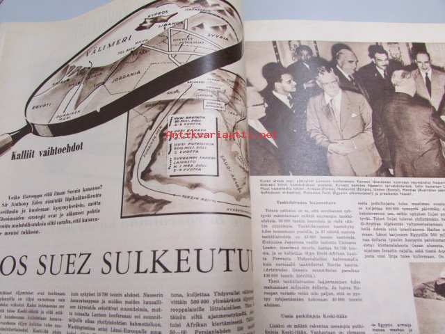 Suomen Kuvalehti 1956 nr 37, jos Suez sulkeutuu, Lapuan piispa (Eero Lehtinen) vihittiin, Ojamon kartano (Lohja) arkkitehtoninen harvinaisuus, teatteria Turun tuomiokirkon portailla, tällaista on joutua mielisairaalaan, Lapuan piispa (Eero Lehtinen) vihittiin, Saksan talousihme, Ranskan Pompeiji, Plastex lamppumainos. Onnittelukuvissa: Ellen Jordas 80v, Walde Waurio 70v. Elsa Greis 60v. Eero Eloranta 50v. Asko -mainos: Askolette sohva ja tuolit.