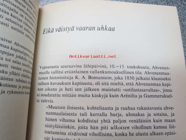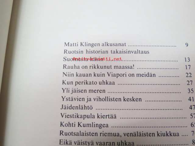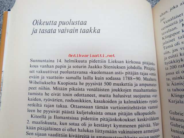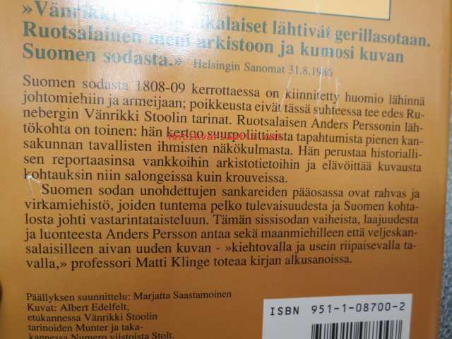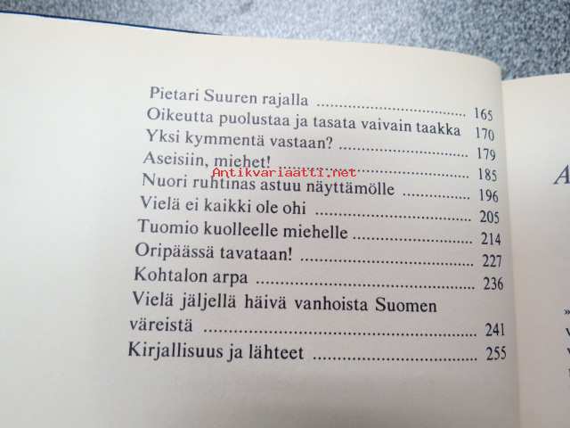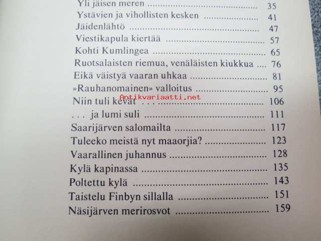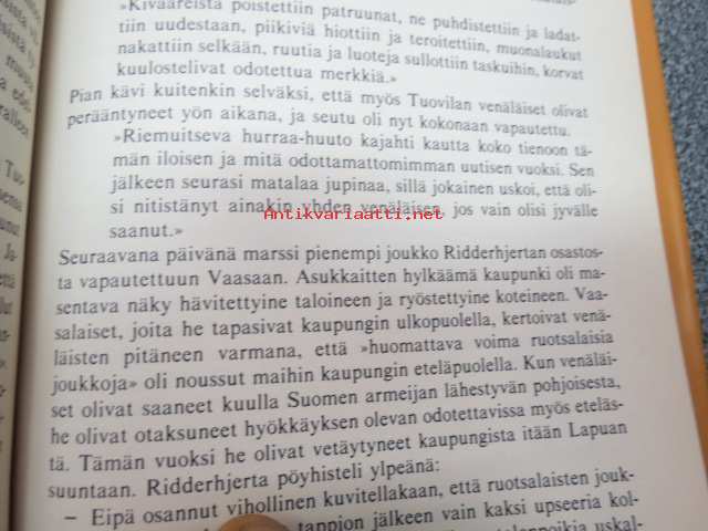 | Saatavilla | 1 kpl | | Julkaisuvuosi | 1988 | | Sivuja | 266 | | Painos | 1. | | Kunto | K3 | | Sidonta/painoasu | Sidottu (kansipaperit) | | ISBN | 951-1-08700-2 | | Kielet | Suomi |
