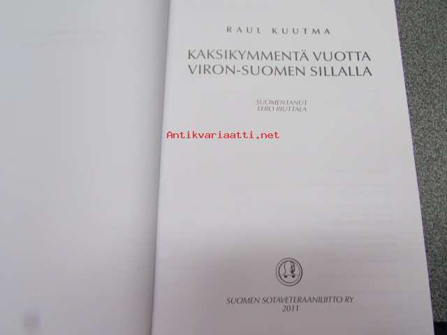 Raul Kuutma, suomentanut Eero Riuttala, Suomen Sotaveteraaniliitto ry, 201118 x 26 cm