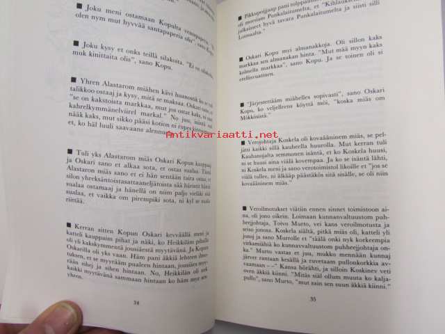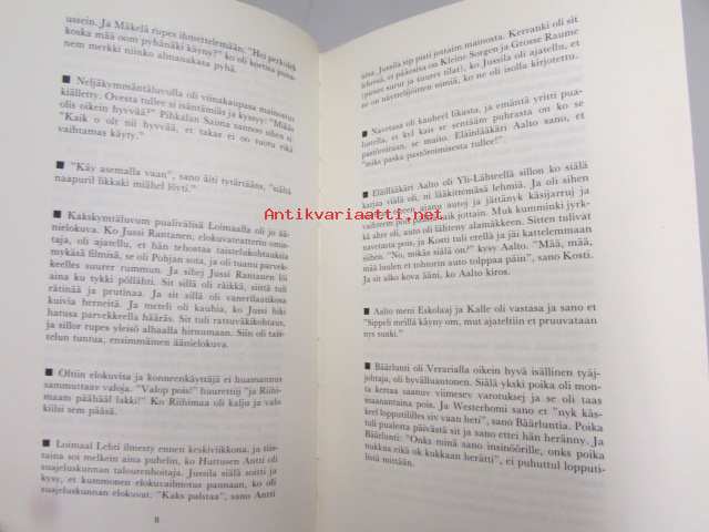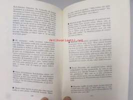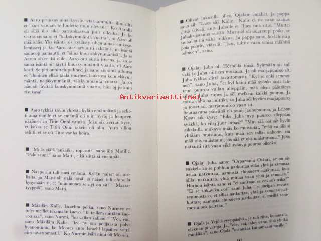 | Saatavilla | 1 kpl | | Julkaisuvuosi | 1984 | | Sivuja | 154 | | Painos | 1. | | Kunto | K3 | | hyvä ja siisti, ei merkintöjä, ei edes nimeä | | Sidonta/painoasu | Kuvitettu kovakantinen | | ISBN | 951-9063-76-5 | | Kielet | Suomi |