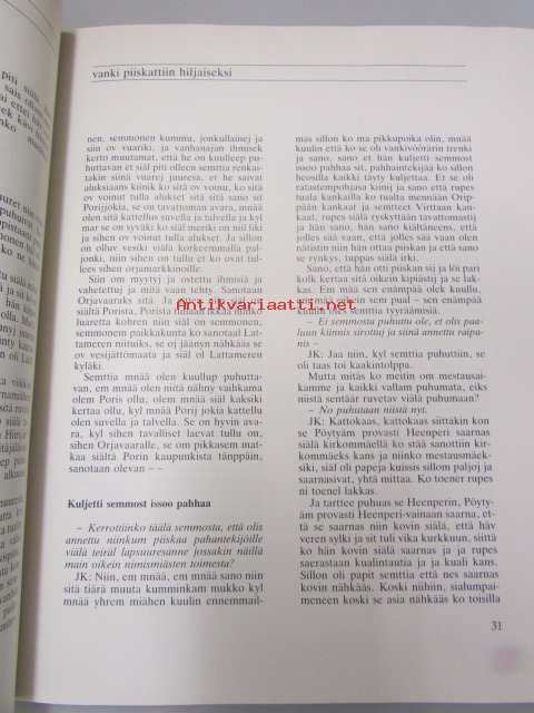 | Saatavilla | 1 kpl | | Julkaisuvuosi | 1985 | | Sivuja | 142 | | Painos | 1 | | Kunto | K3 | | Sidonta/painoasu | Sidottu (kovak.) | | ISBN | 951-873-034-2 | | Kielet | Suomi |