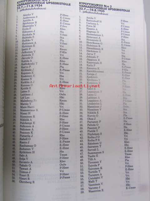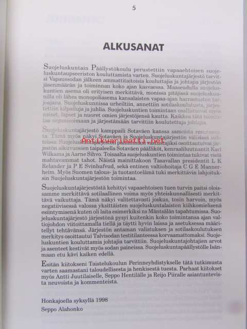 Kaikki Isänmaalle - Suojeluskuntain päällystökoulu 1919-1944, katso tarkempi sisällys luettelo kuvasta