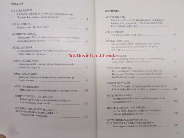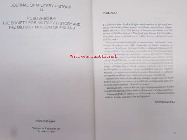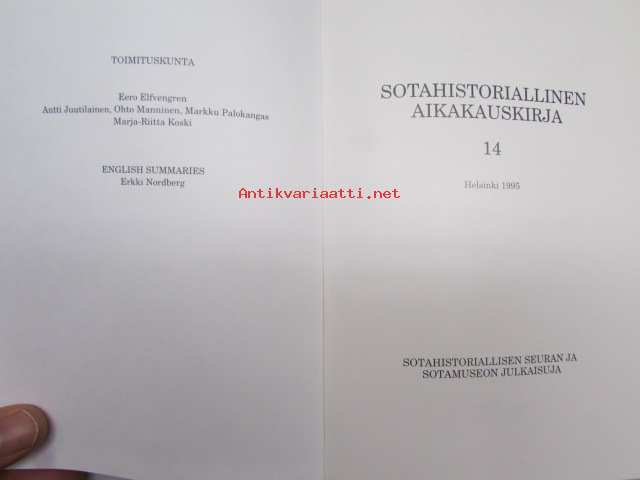 Sotahistoriallinen aikakauskirja 14 1995 sis. mm. artikkelit; Suomen sotaväki 1881-1901, Punaupseeri Toivo Antikaisen toiminta ammattivallankumouksellisena