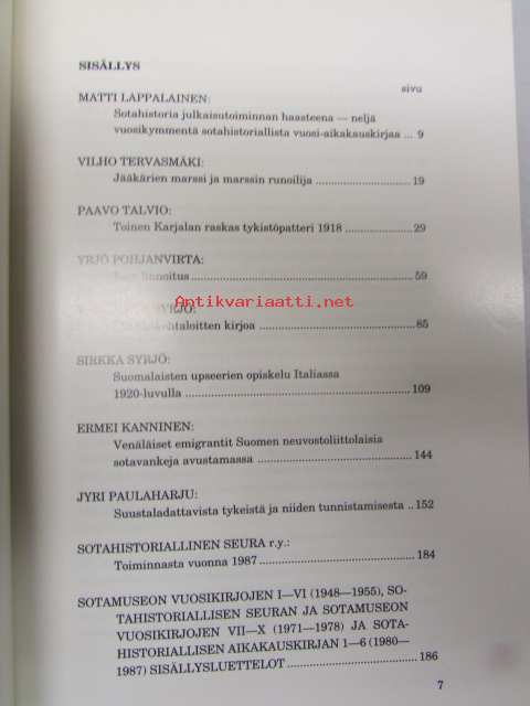Sotahistoriallinen aikakauskirja 7. - sis. mm. Toinen Karjalan raskas tykistöpatteri 1918, Jääkärikohtaloitten kirjoa, Suomalaisten upseerien opiskelua
