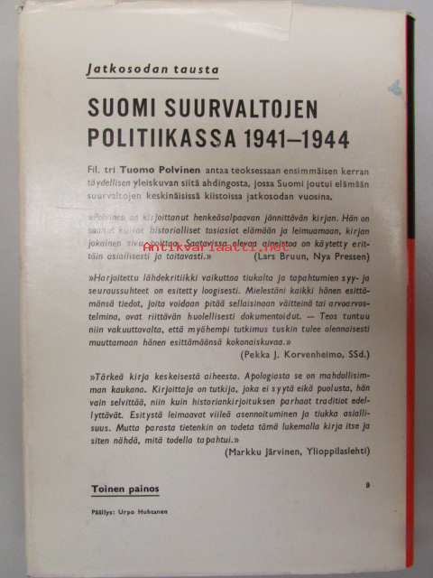 | Saatavilla | 1 kpl | | Julkaisuvuosi | 1964 | | Sivuja | 330 | | Painos | 2 | | Kunto | K3 | | Sidonta/painoasu | Sidottu (kovak.) | | Kielet | Suomi |
