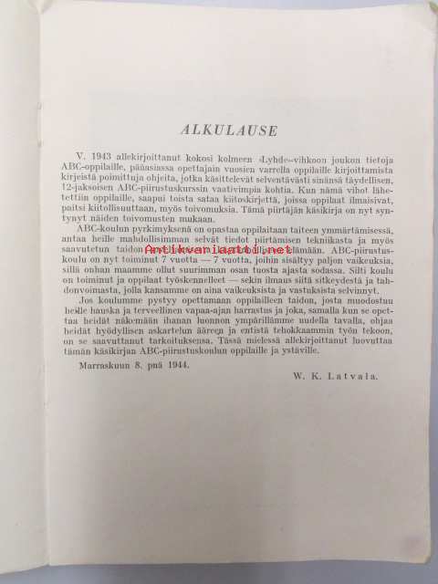 Latvala W. K. (koonnut), ABC Piirustuskoulu, 1944Runsas kuvitus 14 x 21 cm