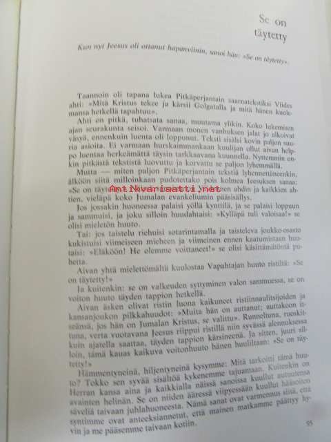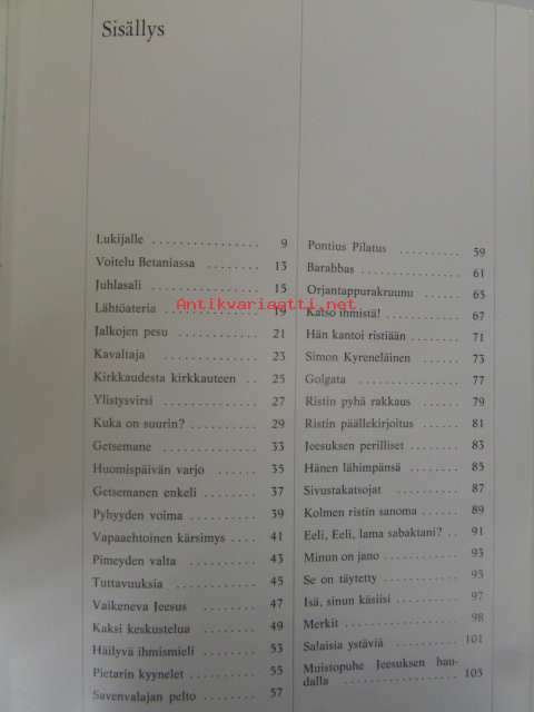 | Saatavilla | 1 kpl | | Julkaisuvuosi | 1976 | | Sivuja | 106 | | Kunto | K3 | | Kansipaperissa on pieniä repeämiä, näkyvät kuvassa | | Sidonta/painoasu | Sidottu (kansipaperit) | | ISBN | 951-600-336-2 | | Kielet | Suomi |