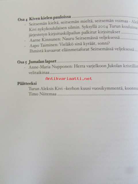 Toimittaja Timo Niitemaa, Turku Aleksis Kiven kerho, 200518 x 26 cm.