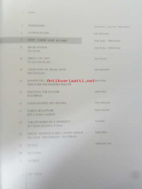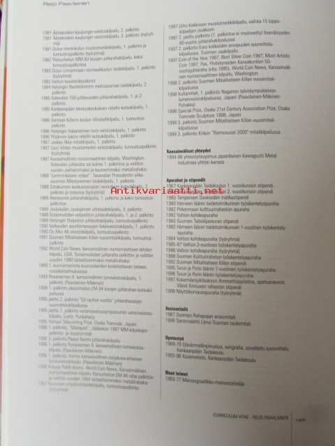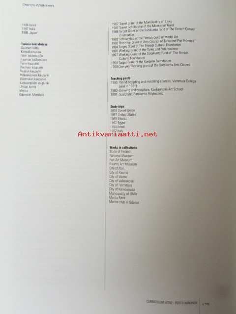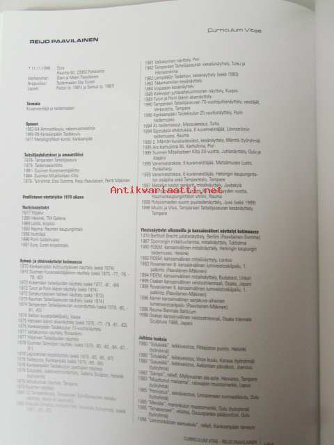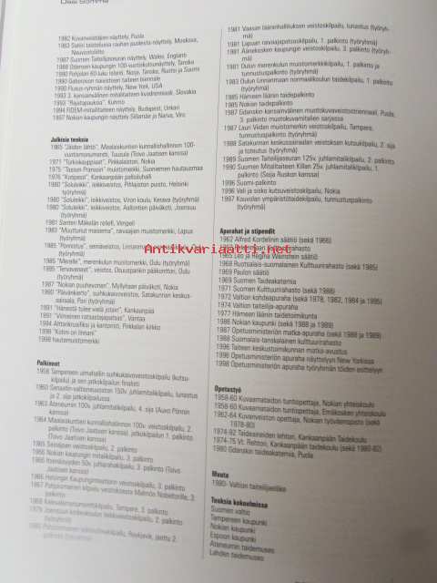 | Saatavilla | 1 kpl | | Julkaisuvuosi | 1999 | | Sivuja | 176 | | Kunto | K3 | | Sidonta/painoasu | Kuvitettu kovakantinen | | ISBN | 951-9355-62-6 | | Kielet | Suomi, Englanti |